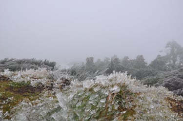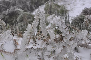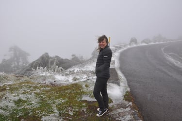 On one of our days we hired a car and headed up into Madeira’s central mountains—a journey that revealed just how diverse and dramatic the island’s landscapes really are. As we climbed higher along winding roads, the air grew cooler, the vegetation changed, and the views became increasingly jaw-dropping. At the island’s highest points, like Pico do Arieiro and Pico Ruivo, we found ourselves thick in the clouds, surrounded by Ice and snow and all the sweeping vistas we hidden. Amazingly, even in the summer, temperatures can drop low enough at these altitudes that heavy frost or even snow isn't unheard of—something we hadn’t expected on a subtropical island! It was a stark and beautiful contrast to the sun-soaked coastlines below, and an unforgettable reminder of Madeira’s wild and varied terrain.
