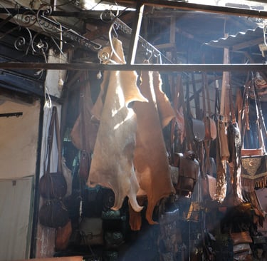 We then followed the boulevard on the opposite side of the mosque to the Place Djemaa El Fna, a large open square beginning to bustle with local snake charmers, groups of men with monkeys dressed in football shirts and dresses (please don’t have your photograph taken with these animals as it will continue to encourage the unfair cruelty in captivity), ladies that wanted to paint your hands with henna and market stalls beginning to set up for the day.After crossing the square we followed the Rue Souk and entered the Souk Des Babouches, a large area of winding alleyways that are filled with shops and stalls selling all sorts of merchandise. Here the prices start high but are easily bartered down to a reasonable price, expect to pay around a third of the opening price. Don’t be afraid to barter, join in with the proprietor and treat it as a game, you win if you pay the price you want to! The alleyways are crammed and lead off in all directions and it would be easy to get lost, a good idea is to have a home point marked on a map on your phone so you can get directions to get back to where you started from, or you may have to fall for the “guide” to show you back to a point to recognise. As an example, we walked around eight miles around the Souks as they all link together, passing some points several times not really knowing where we were going as we were just going for a wander around. We also passed along the Rue Bad Allen, the area famous for its tanneries, we passed without any problems even though many reviews warn of this places and the aggressive men that want to guide you into one of the many tanneries and then charge you around 200 Dhirams for the short privilege, getting quite aggressive when you refuse to pay.